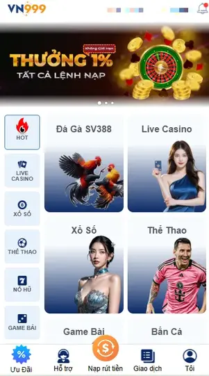 VN999 không chỉ mang đến trò chơi đa dạng mà còn tối ưu hóa trải nghiệm với app di động, giao dịch nhanh và khuyến mãi hấp dẫn. Hãy đăng ký VN999 ngay hôm nay để nhận quà tân thủ, tham gia đá gà Thomo và trở thành VIP đích thực!